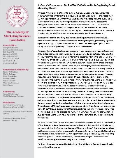 2015 AMS/CUTCO-VECTOR MARKETING DISTINGUISHED MARKETING EDUCATOR AWARD