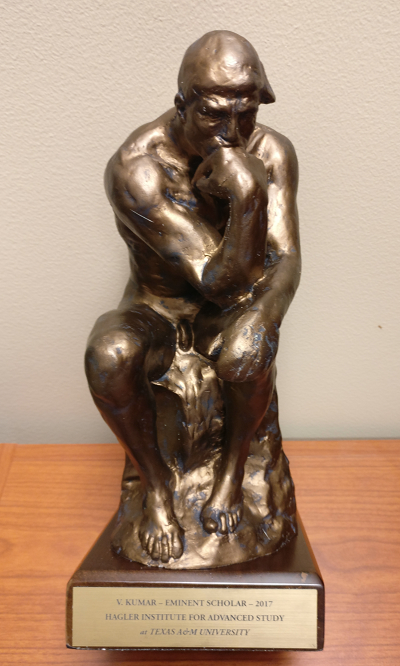 Dr. V. Kumar was presented with the 2017 Eminent Scholar Award by the Hagler Institute for Advanced Study at Texas A & M University.
